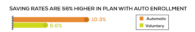 Automatic features have been proven to increase plan participation by 31%[3] and while this is a huge factor, it does not tell the whole story. One-third of participants who were auto-enrolled have never increased their contribution rate, and 44% have never changed their investment selections.[4]